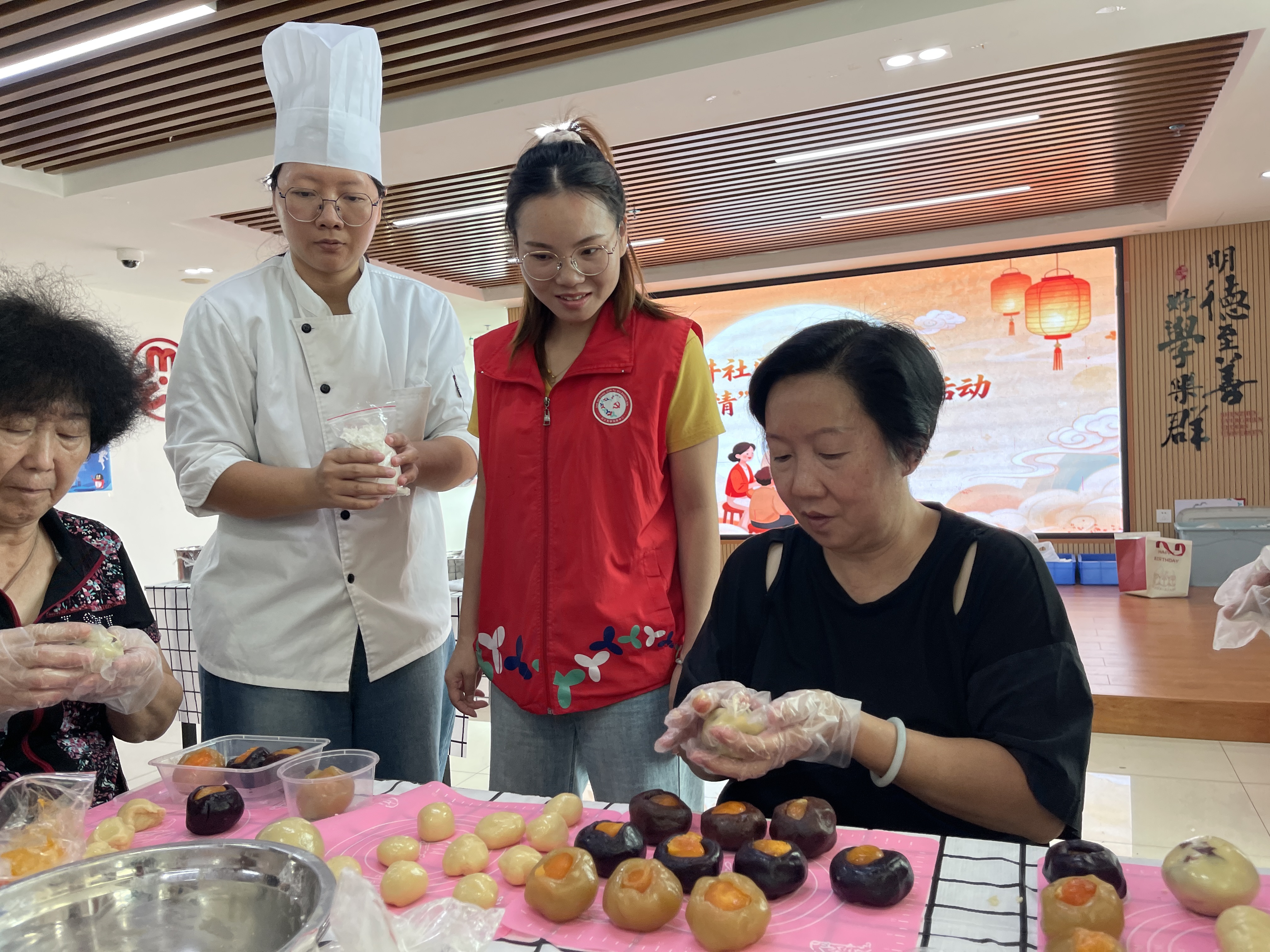 中秋是象征团圆的传统节日,可如今居民生活节奏加快,邻里间互动愈发减少,户籍独居长者与困难家庭在节日里更易感到孤单。对此,沙井社区特意筹备此次活动,不仅邀请专业蛋糕店的师傅现场指导,还准备了优质的月饼制作材料。活动现场,居民们围坐在一起,跟着师傅学习揉面、包馅、压模,欢声笑语不断。大家互相分享制作技巧,有的居民还将刚做好的月饼送给身边的邻居,在动手实践中增进了彼此的情感联结。