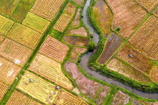 2022年7月3日,无人机俯瞰下的江西省抚州市金溪县浒湾镇中洲村万亩水稻绿色高产高效示范片区喜获丰收,金黄的稻子与村庄相映生辉,美不胜收。 近年来,金溪县积极推进水稻绿色高产高效示范创建工作,在全县建立多个水稻绿色高产高效示范片区。示范片区除了大力推广水稻种植新技术和水稻优质新品种外,还推行稻虾共养、稻鸭共育等绿色种养模式,既实现了藏粮于地、藏粮于技,又拓展了粮农增收致富渠道。