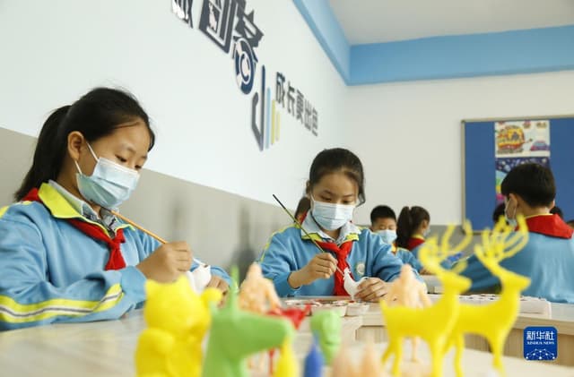 5月27日,合肥市六安路小学翠微分校学生在老师的指导下学习国画。 5月26日,科普志愿者为阜阳市颍上县第十六小学学生讲解机器人编程知识。 5月26日,阜阳市颍上县第十六小学老师在指导学生击鼓。 自双减政策实施以来,安徽多地学校开展劳动教育与实践、艺术类、体育类、益智类等种类多样的课后服务活动,促进孩子们健康快乐成长。
